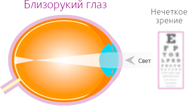 Близорукость (миопия) — распространенное нарушение зрения, при котором человек хорошо видит вблизи и плохо различает удаленные объекты за счет удлиненного глазного яблока, где свет не достигает сетчатки). Близорукость бывает стационарной, когда рефракция изменяется не более чем на 0,5 D в год, а также прогрессирующей двух степеней (зрение ухудшается более чем на 0,5-1 диоптрию в год).